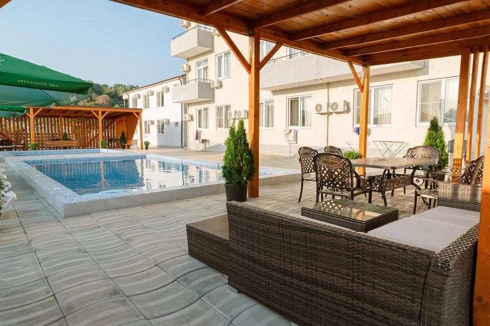 Удобства в номерах: Кондиционер, Терраса, Фен, Телевизор, Холодильник, Телефон, Душ