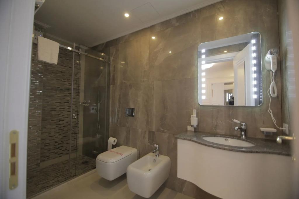 Удобства в номерах: Сейф, Отопление, Кондиционер, Обслуживание в номерах, Терраса, Фен, Телевизор, Холодильник, Мини-бар, Телефон, Душ