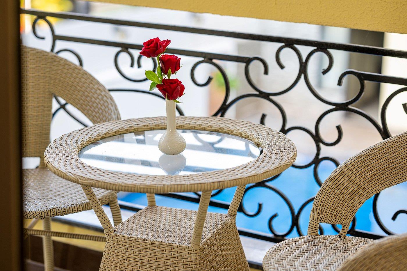 Удобства в номерах: Кондиционер, Обслуживание в номерах, Фен, Телевизор, Мини-бар, Телефон, Душ