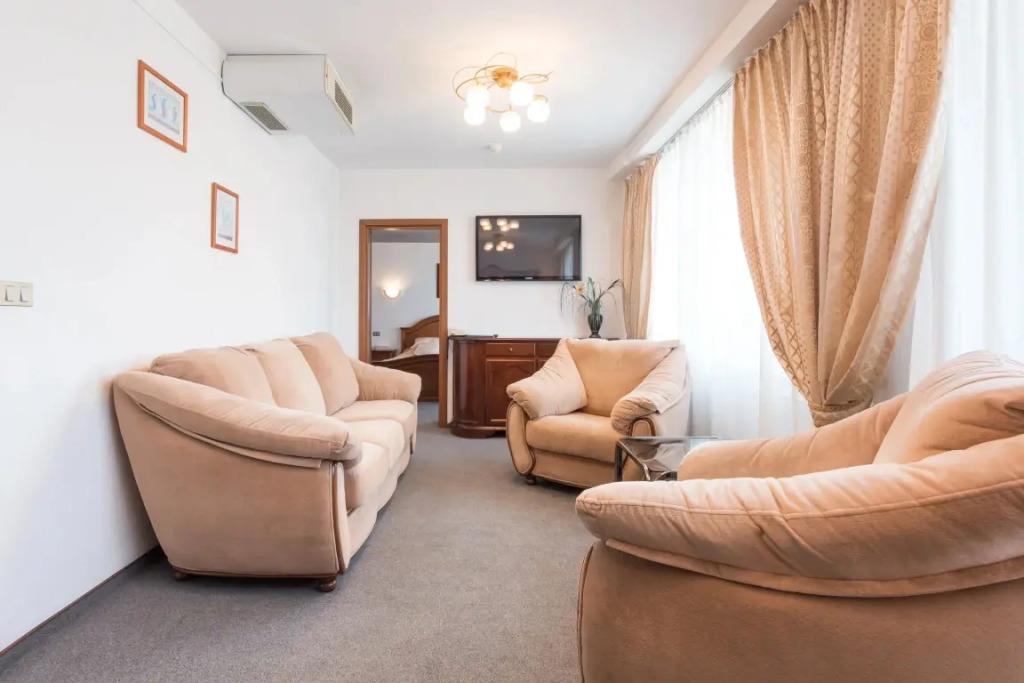 Удобства в номерах: Сейф, Отопление, Кондиционер, Обслуживание в номерах, Телевизор, Холодильник, Телефон, Душ