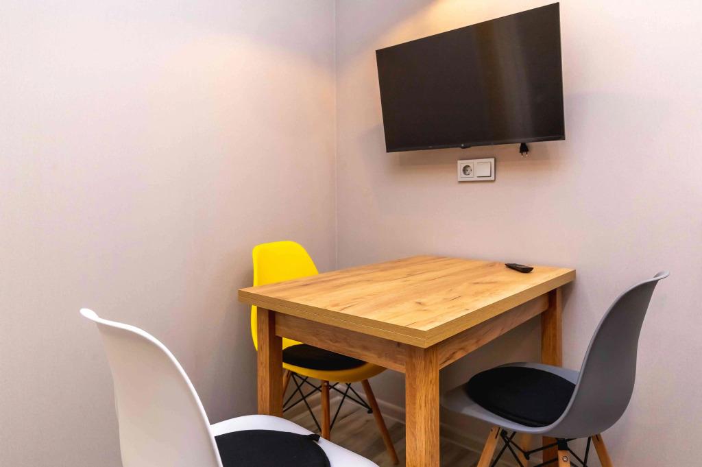 Удобства в номерах: Отопление, Кондиционер, Фен, Телевизор, Холодильник, Душ, Кухня