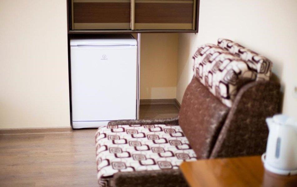 Удобства в номерах: Отопление, Кондиционер, Телевизор, Холодильник, Душ, Кухня