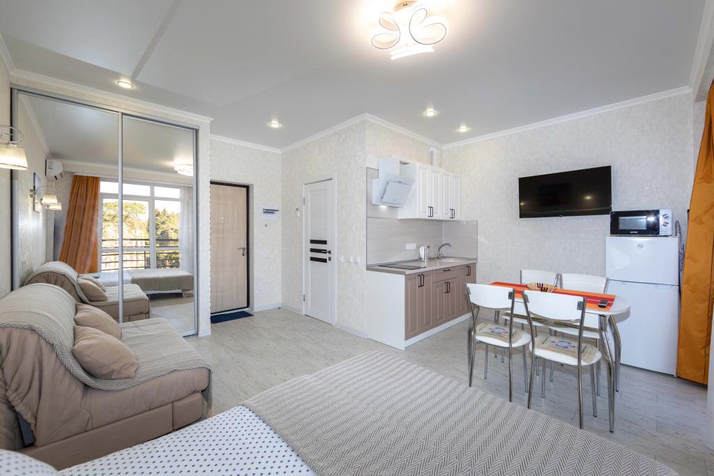 Удобства в номерах: Кондиционер, Телевизор, Холодильник, Душ, Кухня
