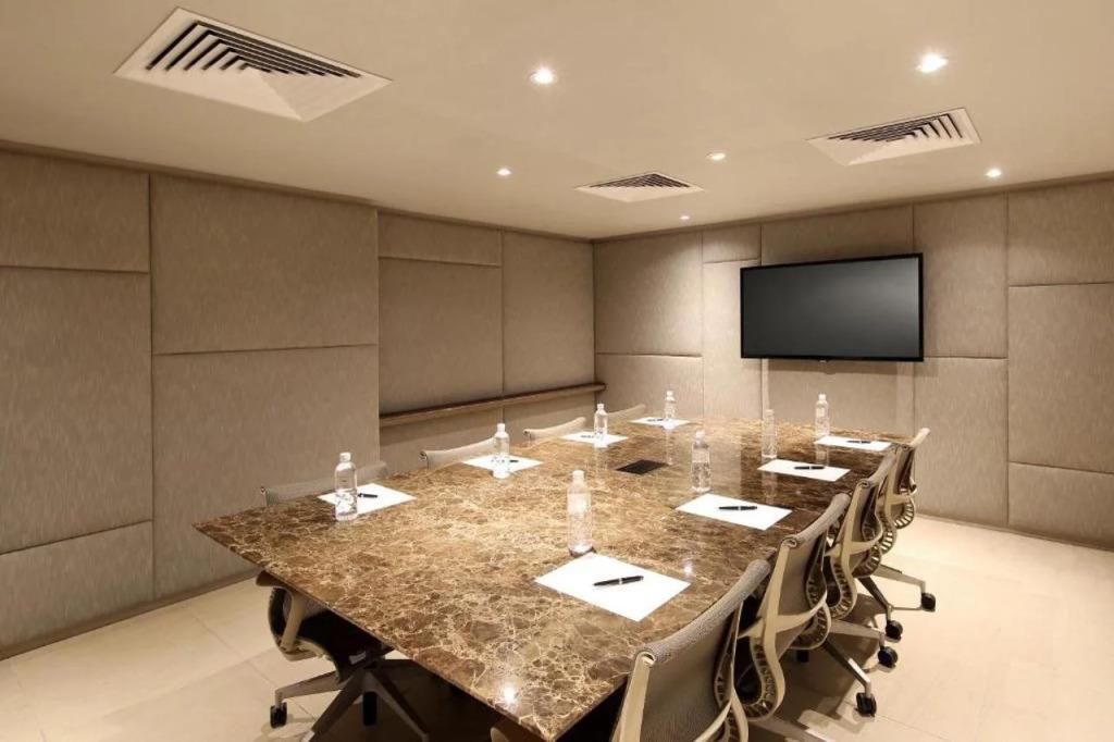 Удобства в номерах: Сейф, Кондиционер, Обслуживание в номерах, Фен, Телевизор, Холодильник, Телефон, Душ, Кухня